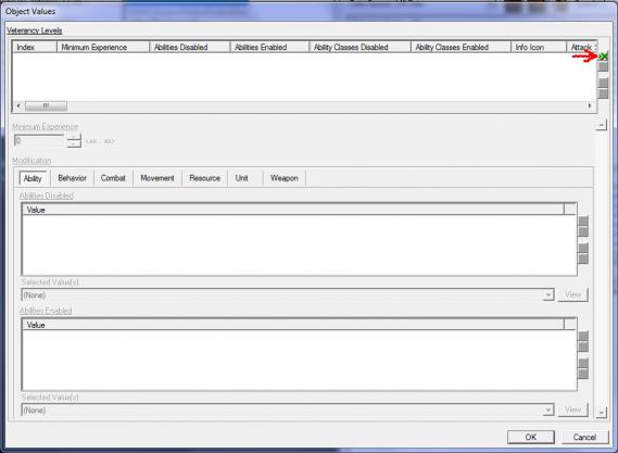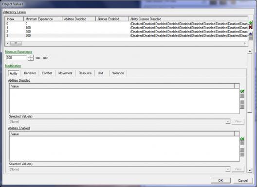 Измените данные об алгоритме (Behavior). Щелкните на пустой раздел 'Veterancy Levels' (получение опыта).