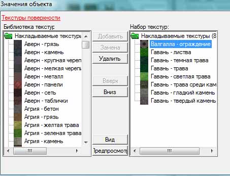 Как вы помните я заменил «Гавань – грязь» на «Валгалла – ограждение», поэтому тут надо сделать то же самое. Нажмите на иконку текстуры из правого столбца и из списка выберите новую текстуру, которую мы заменили ранее.