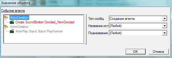 Поменяйте событие "ActionDamage" на "ActorCreation". Для этого выберите пункт "ActionDamage" и справа в окне "Тип Сообщения" выберите "Создание Агента".