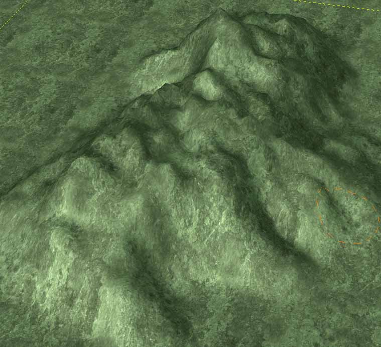 Проведите кисточкой по поверхности горы и следите, чтобы радиус кисти не заходил на резкие склоны.