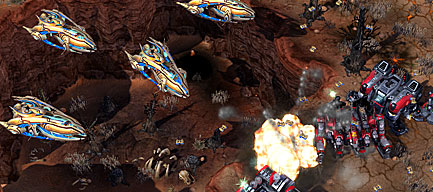 Громадные авиносцы служат командными центрами для лидеров флота Протоссов. Тяжело бронированные и защищённые могучими щитами, авианосцы могут прорубаться сквозь вражеские блокады, выпуская множество беспилотных перехватчиков. Эти маневренные, управляемые компьютером самолёты прорываются сквозь вражеские лётные формации и беспощадно ничтожают медлительные наземные цели мощными плазменными зарядами.