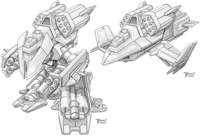 Множество экспериментов по возможности нанесения ударов класса воздух-земля проводились терранами. Они опробовали различные тупиковые подходы, от которых затем отказывались: комплекс из артиллерии для десантных кораблей, полуавтономные дроны с удаленным управлением и установленные на борту самолетов платформы орудий – вот отдельные примеры из этих многих неудачных разработок. Все эти непрерывные поиски компромисса в итоге привели к немного измененной модификации истребителя Привидения (Wraith), превосходного бойца в космосе – у него снизу добавили импульсный лазер, чтобы корабль мог продолжать выполнять свою роль в ближайшей перспективе. Но даже в этом случае оставалась неизменной проблема в создании действительно эффективной поддержки класса воздух-земля, весящей поменьше, чем боевой крейсер.