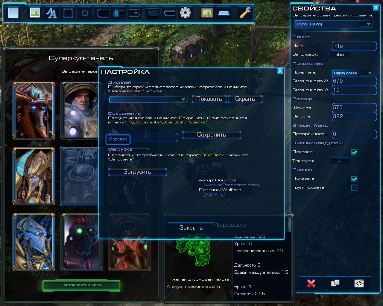 Русифицированная версия полезной наработки "SC2 Dialog Designer" авторства Doubotis'а. Сделано на базе Beta 3.