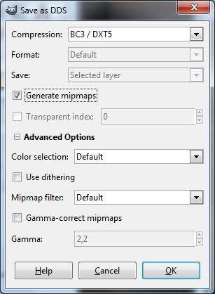 Далее перед нами появится меню "Save as DDS", где следует выбрать Compression "BC3 / DXT5" и отметить галкой пункт "Generate mipmaps".
