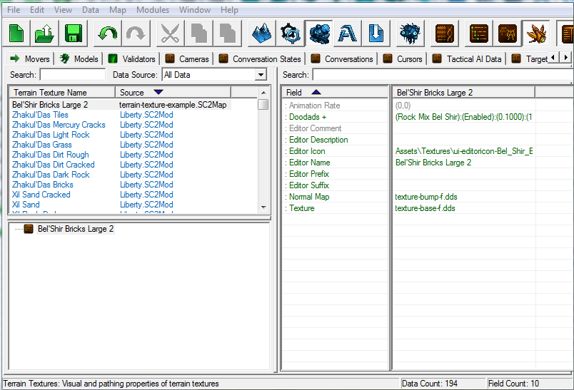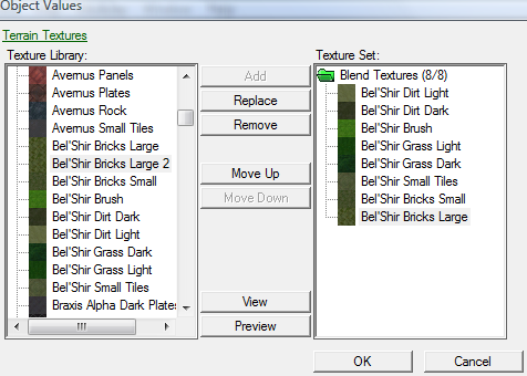 Найдём, например, "Bel'Shir Bricks Large" и создадим его копию (правый клик по строке с объектом\"Duplicate terrain texture...", ОК в появившемся окне).