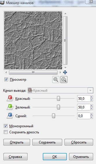 В появившемся окне отметим галкой пункт Монохромный, затем установим значения Красный и Зелёный в 50.