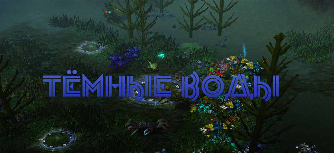 Тёмные воды - это карта, в которой вам предстоит выбрать героя одной из трех враждующих сторон: амфибии, змеи или мертвые. Действия карты разворачиваются на морском дне, где обосновались лагеря враждующих сторон. Чтобы победить, вам нужно разрушить два коралловых бассейна на базах противника, для этого вам необходима армия, а также оборона от вражеской.