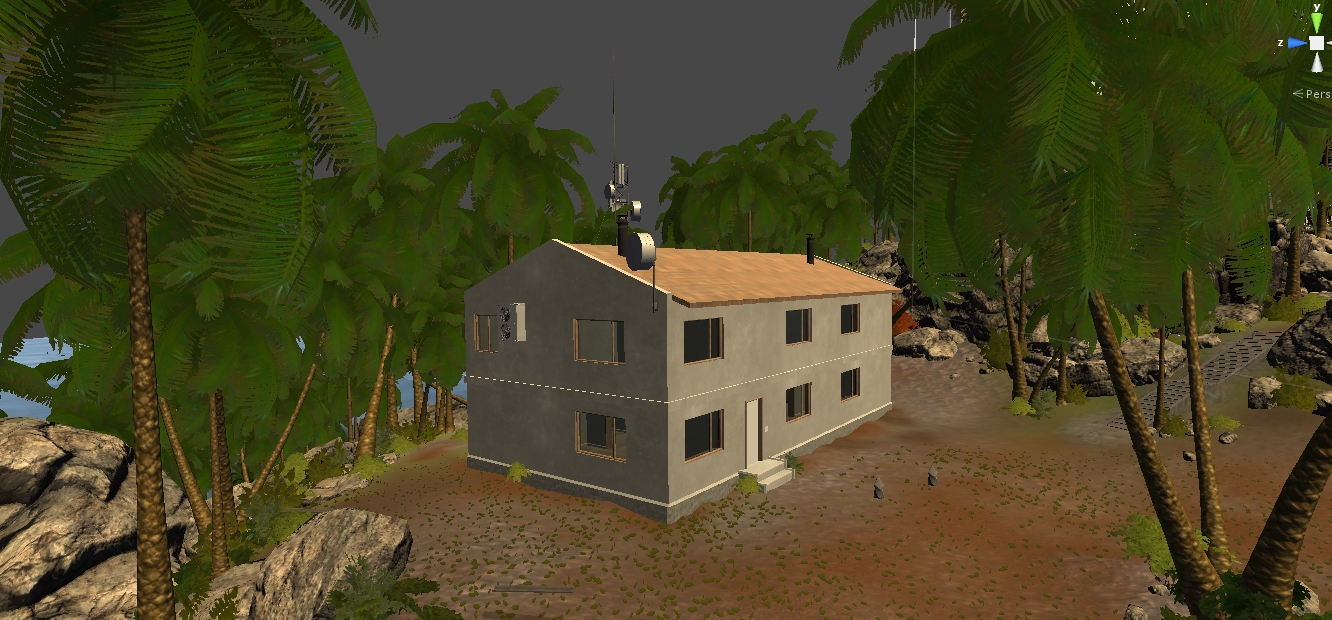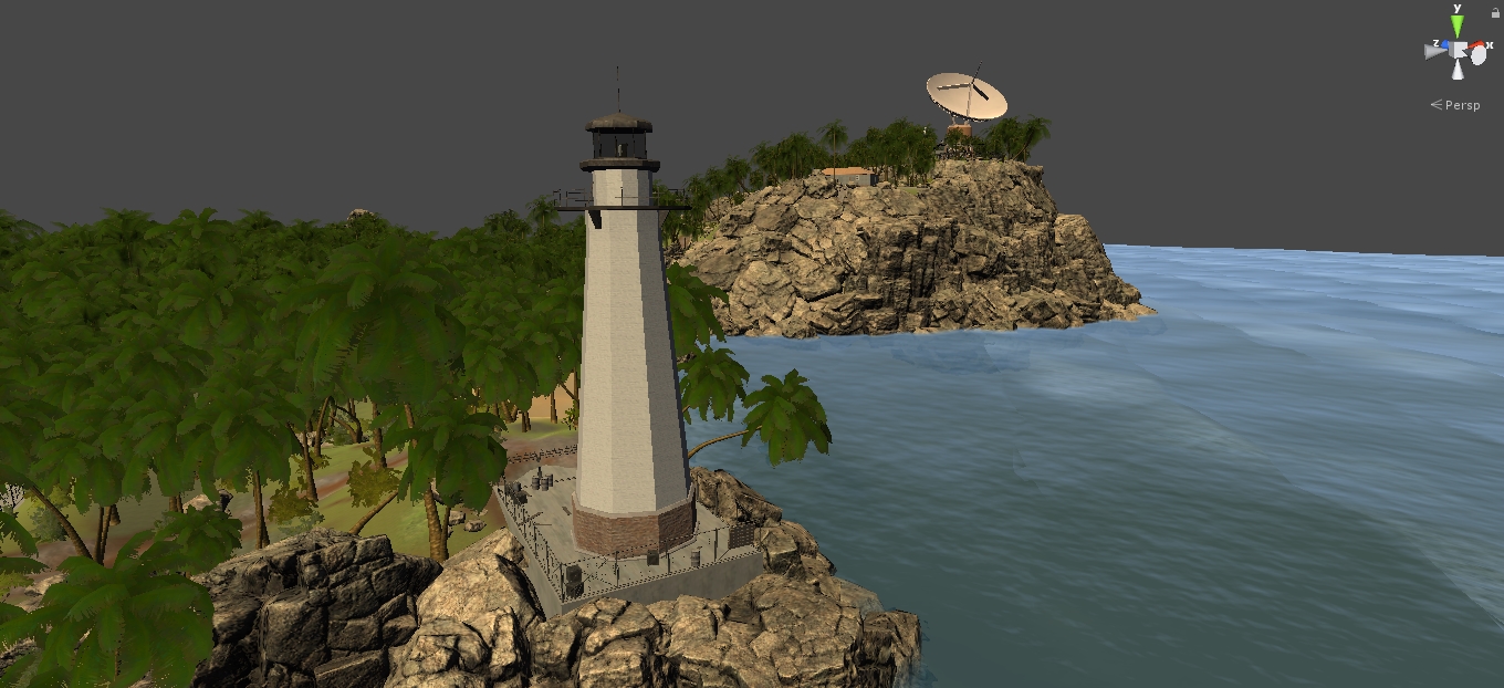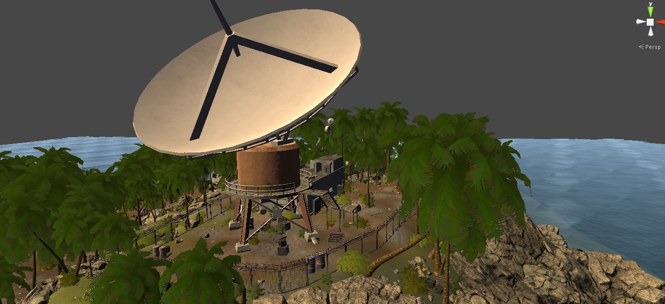 Действо происходит на острове, и так как игру делаю для себя, для души, и чтобы заработать триллиард шмеклей, контент пилю для себя преимущественно сам - то что могу скачать бесплатно скачиваю, тот что не могу - делаю сам. Единственно мной было опрометчиво закуплено здание обсерватории с радаром, но только потому что на тот момент я еще не был готов сделать столь сложный объект. Сейчас мне уже это просто в падлу переделывать, потому что я только закончил с полным обустройством экстерьер острова! Как господь б-г я на создал целый остров и полностью его уделал - осталось теперь также детально уделать интерьеры 4 основных строений - жилого корпуса, обсерватории, маяка и столовой.