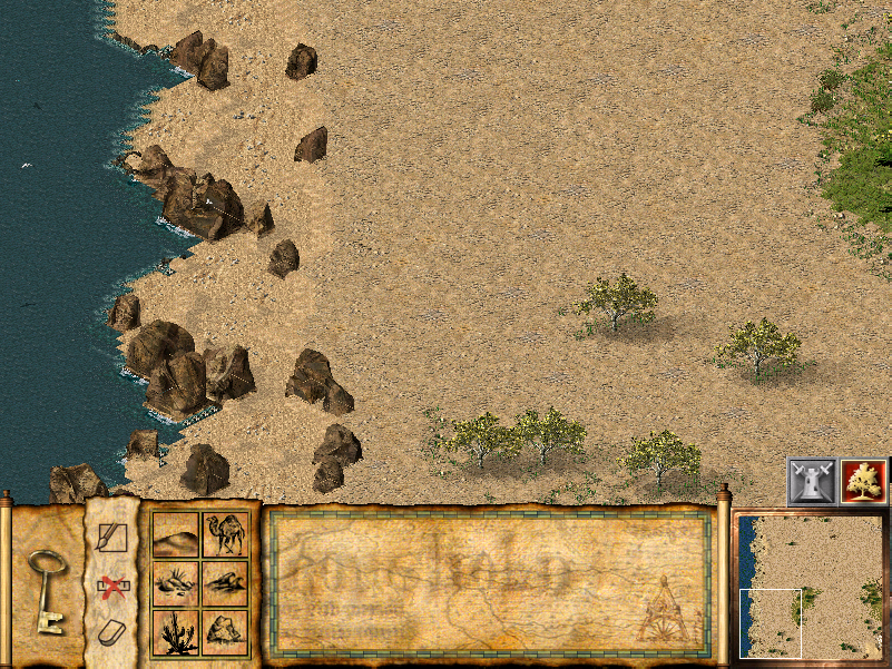 Немного зелёных мест и много свободного места, большое побережье и скалы недают возможности обустроить свой замок на всю карту, но места достаточно, а ресурсов вполне хватает.