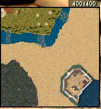 Карта для двух игроков. Игрок с севера обладает большими запасами дерева, железа и камня, а также плодородной почвой. Но у игрока с юга есть ОЧЕНЬ много нефти, что приносит ему большой доход. На эти деньги он сможет покупать все необходимые товары - продукты, камень, дерево, оружие, металл и т.д. Игрок с севера должен, используя преимущества своего расположения, захватить город врага.