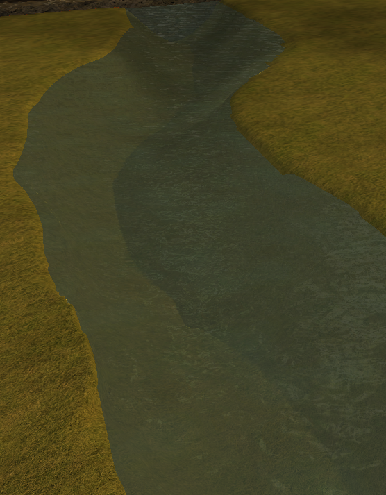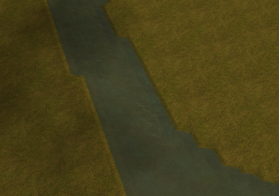 Вышло так. Не идеал, но уже больше похоже. Хотя странно смотреть на неожиданный обрыв на дне реки.