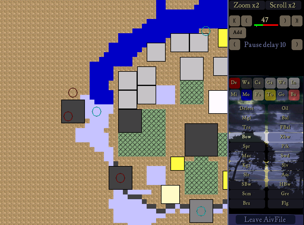 - Ставим на полосе например 41. Удалим мешающие башне стены, и поставим её. Змея использует Маленькую башню (Tower 3), Ставим на них лучников (Bow)