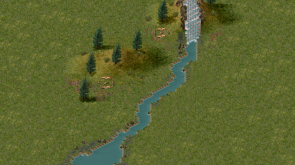 Немного подумав, я сделал ещё и реку с водопадом, впадающую в небольшое озеро. Берега немного заболочены. Поставил ещё холмы и немного разных текстур. Думаю, ландшафта для статьи достаточно.