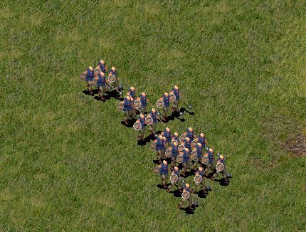 Чтобы показать, что атакует толпа головорезов, я во время паузы указал всем разные цели: одни лезут на стены, другие ломают здания и грабят, третьи убивают лучников, четвёртые уничтожают разведчиков, а несколько хочет убить командира.