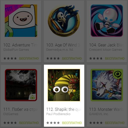 Потом портировал на андроид(play.google.com/store/apps/details?id=air.questshapikapk&hl=...) и игра очень долго была в топ 100 бесплатных