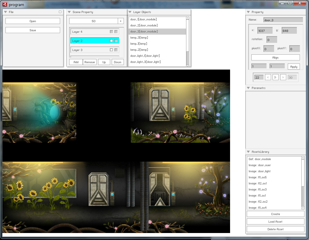 Разработка продолжается активно каждый день. На данный момент полностью готовы 13 локаций, а также сделали самопальный редактор :) Хоть он местами кривоват и глючный, но без него было тяжко. Выглядит он так