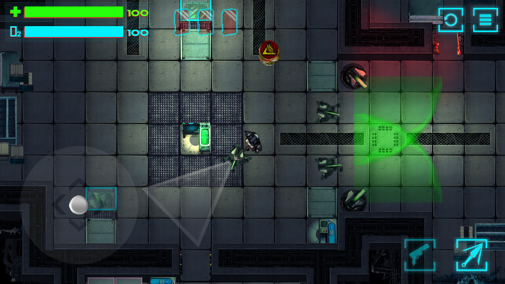 - Взаимодействие с окружением (ящики, кнопки, двери, лазеры);