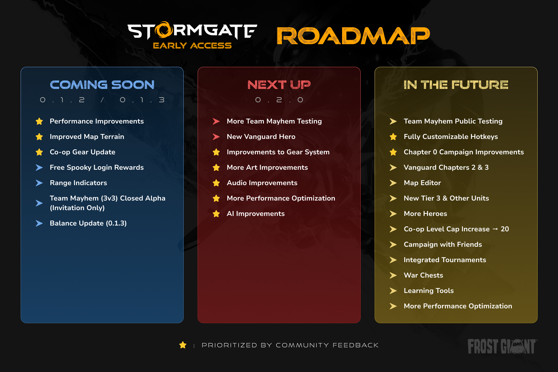 По этому случаю в Stormgate нарисовали новую красивую дорожную карту, а старую, как водится, выбросили нафиг, отказавшись от запланированного в октябре релиза патча 0.2.0.