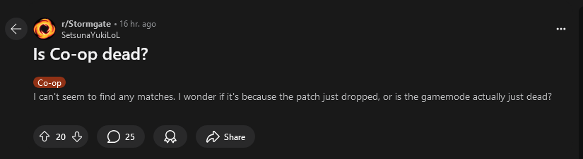 Тим Кэмпбелл провел стрим с вебкой и похвастался успехами команды Stormgate, результатом которых стал выход патча 0.1.2. Хотя по старой дорожной карте в октябре планировался патч 0.2.0, но кому из сотни игроков Stormgate не всё равно? Patch is just a number.
