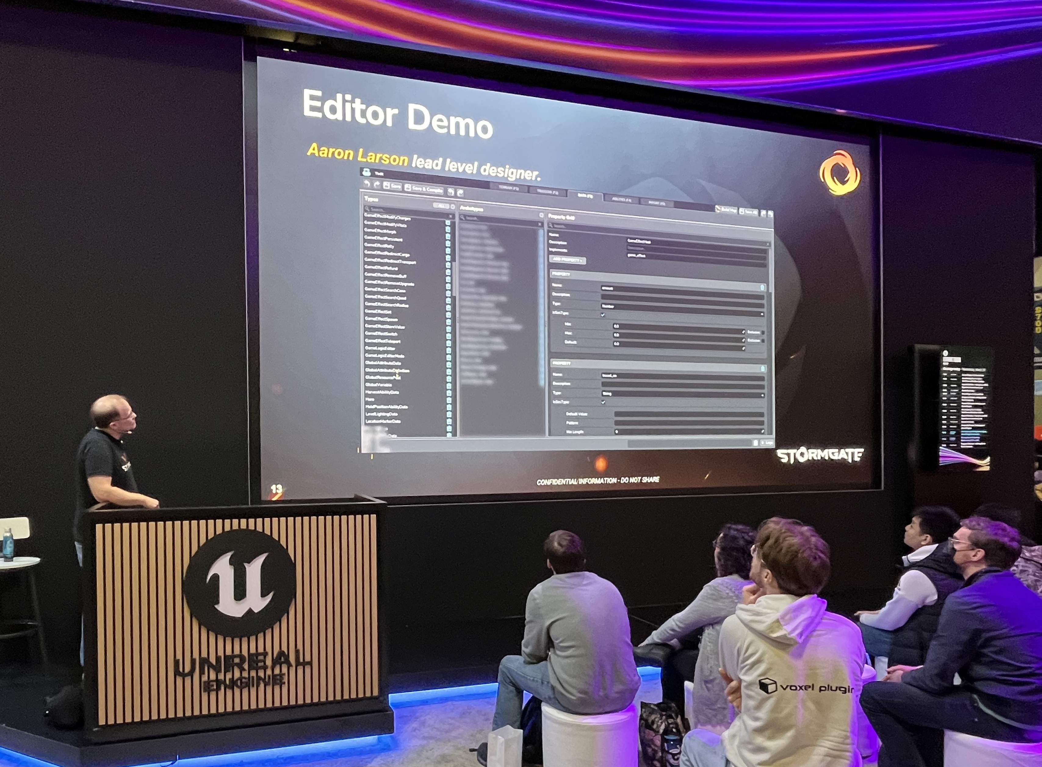 В конце презентации Тим Мортен представил видеообзор редактора Stormgate, озвученный ведущим дизайнером игровой кампании Аароном Ларсоном. В видео были представлены некоторые инструменты, которые будут в распоряжении игроков в клиенте Stormgate для создания собственных карт, модов и пользовательских игр. Оно демонстрирует, насколько легко игроки смогут создавать красивые карты, настраивать пользовательские события и триггеры, а также создавать новые способности юнитов.