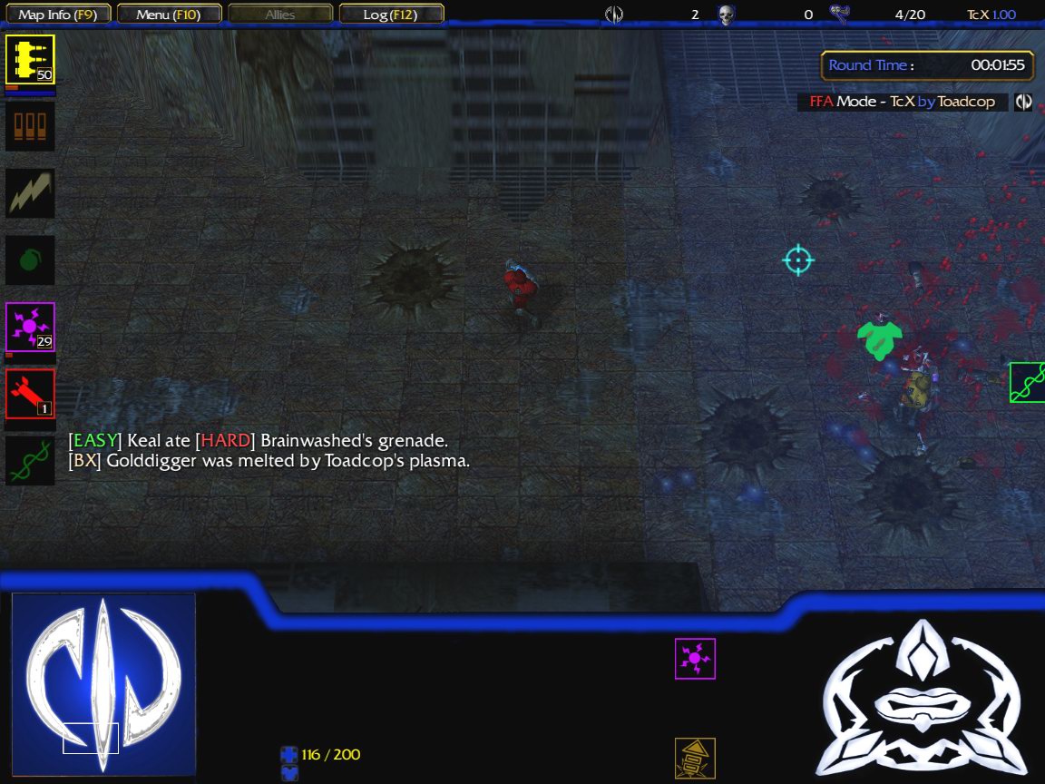 - Режимы FFA и командной игры, оба поддерживают игру с ботами