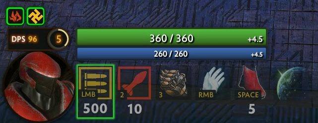 Если же у вас закончились патроны или же вы хотите наносить больше урона на начальном этапе игры, можно просто бить с руки, например это полезно, чтобы добивать крипов на линии (добивать можно и своих)