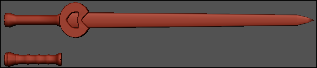 - Я создал в хай-поли только ручку меча, т.к. остальное (рельеф на гарде и клинке) легче сделать через CrazyBump или Photoshop (с плагином nvidia)/Gimp