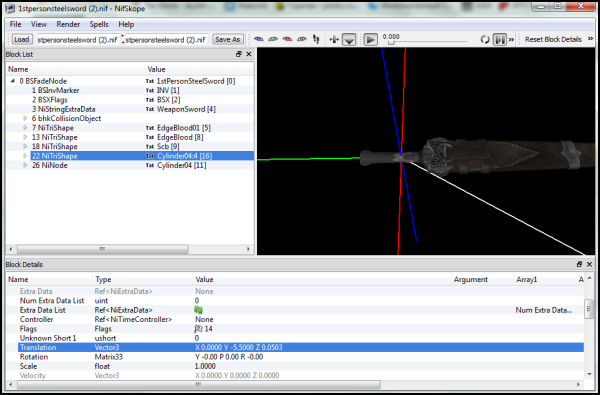 Не забудьте также присвоить ножнам и моделям крови их имена в Block Details (Name - string), на те же, которые были до импорта мешей.
