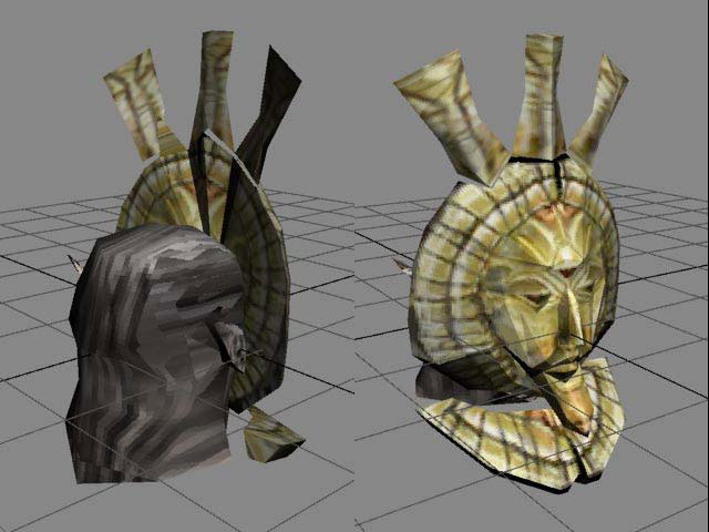 Я добавил новую голову для расы Темных Эльфом и сделал скриншот, для того, чтобы посмотреть, что получилось. Теперь можно заметить, что текстуры размещены неправильно и имеют фиолетовый оттенок, когда находятся в тени. Кроме того наш меш выглядит угловато и отчетливо проступают грани полигонов.