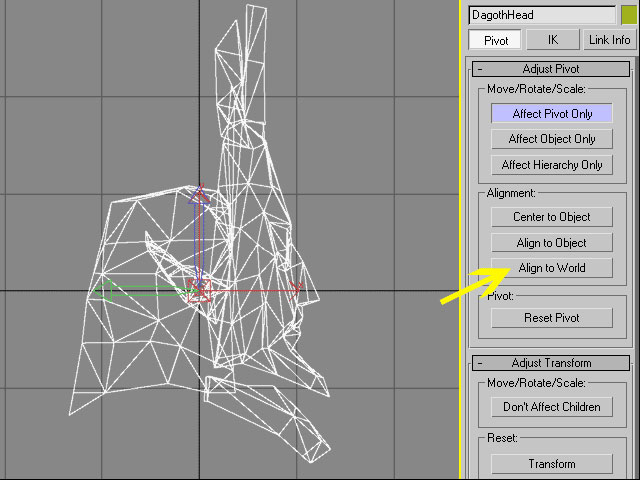 Поскольку мне нужна только голова, я не буду помещать ее так, как это сделано в исходном файле. Голове требуется точка привязки 0,0,0, которая будет служить хорошей стартовой точкой для любого меша. Вероятно, вам придется долго экспериментировать с экспортом nif-фйлов и проверкой их непосредственно в игре. Удостоверьтесь, что вы выбрали точки привязки и