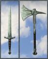 - Эльфийские меч, двуручный меч, топор и секиру.