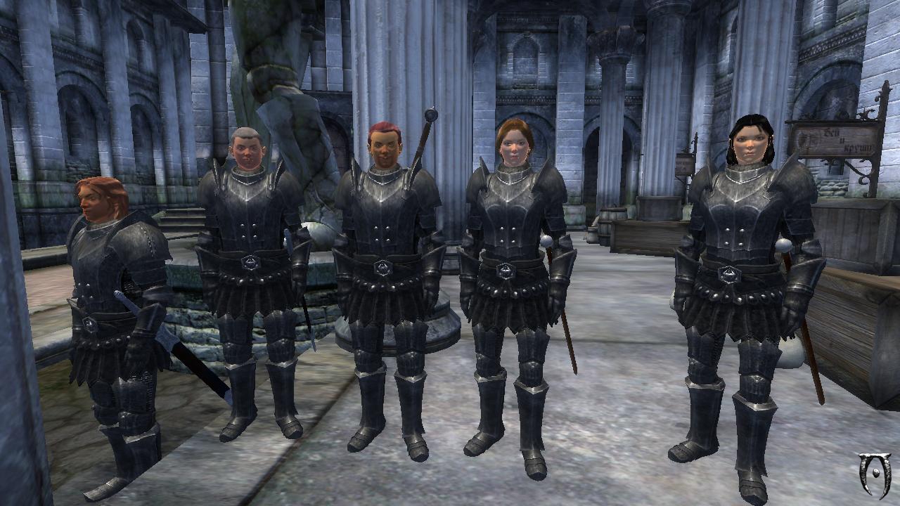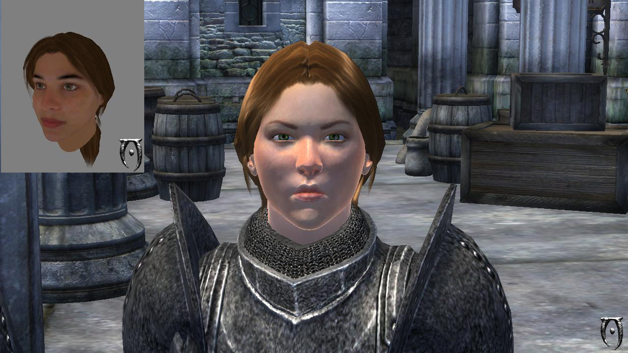 Я закончил все необходимые приготовления и тесты, сейчас у меня есть готовая модель того, как будет выглядеть моя машинима, и на что я смогу рассчитывать при съёмках. А также новое готовое видео, которое я выложу в следующую новость, так как в предыдущей новости, также было видео, поэтому сейчас будет порция скринов. В сегодняшней новости, я начну знакомить вас с героями фильма и одной базовой локацией, где будут разворачиваться события в самом начале фильма. Обращаю ваше внимание, что героев целых 5, они являются солдатами разбитой в сражении армии, которые путешествуют небольшим отрядом, возвращаясь домой. Я поставил пока всего два мода улучшающих графику, на лица и на броню/оружие. Oblivion Character Overhaul 2 и Weapon & Armor retexture от O.R.Team PlugIn, соответственно, на скринах с лицами, в углу будет ванильный портрет героя, а крупным планом вид в машиниме. Сразу скажу, что разница после мода на лица - просто огромная, многое зависит от освещения, но черты лиц не такие грубые, и выглядят гораздо привлекательнее. Аргониане и каджиты просто на порядок красивее, вот как они выглядят на мощной машине с ENB, не намного хуже, чем в том же Скайриме: