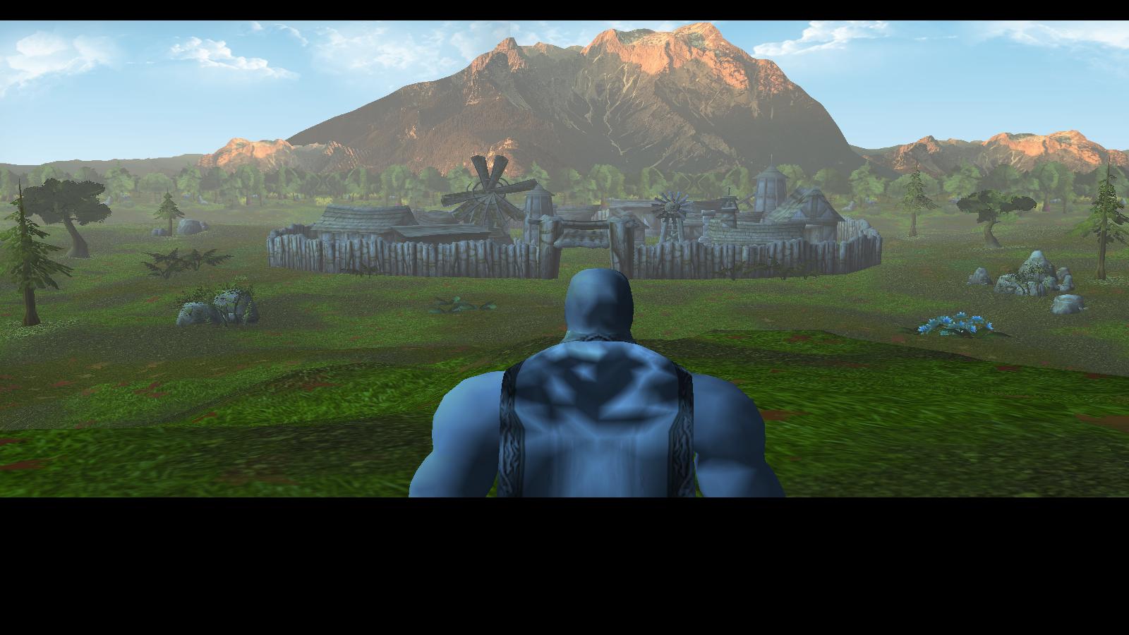Сегодня я выкладываю несколько скринов, которые демонстрирую стиль ландшафта, отличающийся от первых трёх свитков, а также скрин деревни, в которой будут развиваться основные события. На данный момент готово полностью ~12 минут машинимы, но эта серия получиться значительно больше, чем первые три свитка, и не будет укладываться в формат, 20-25 минут на свиток: