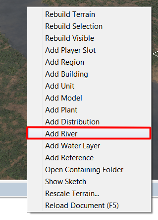 Чтобы вода текла, нужно создать “River” (реку), которая задаст направление течения. Нажмите ПКМ в любом месте карты и выберите “Add River”.