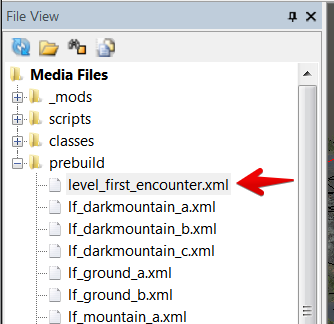 Дважды кликните на “level_first_encounter.xml”, чтобы открыть уровень для редактирования.