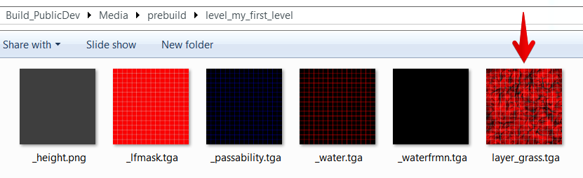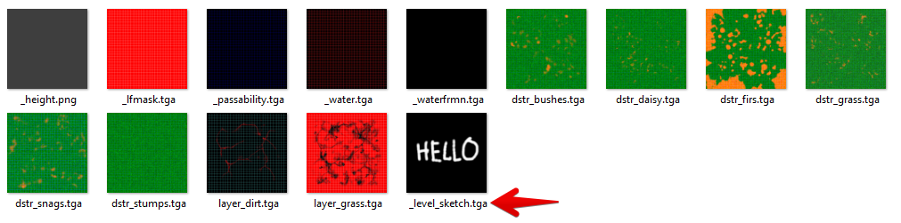 Карта текстурных слоёв, как и все другие рисуемые карты, — это текстуры внутри папки “prebuild”, которые можно (а иногда и нужно) редактировать в любом другом графическом редакторе: