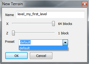 Введите Name (имя) для своего уровня, выберите размер и Preset (шаблон).