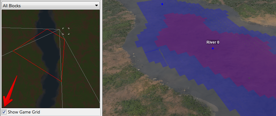 Примечание: используйте “Show Game Grid”, чтобы визуализировать проходимые/непроходимые области уровня: