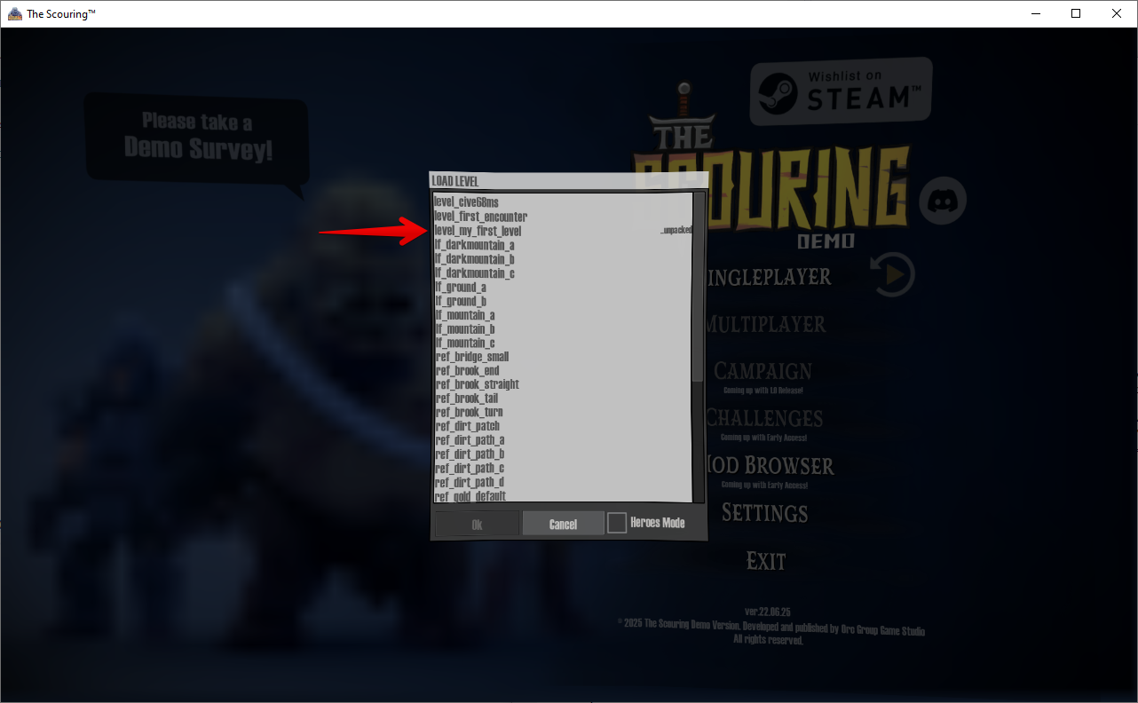 Важно: имена уровней, как и все имена ассетов определённого типа в The Scouring, должны быть уникальными и не совпадать с именами стандартных уровней!