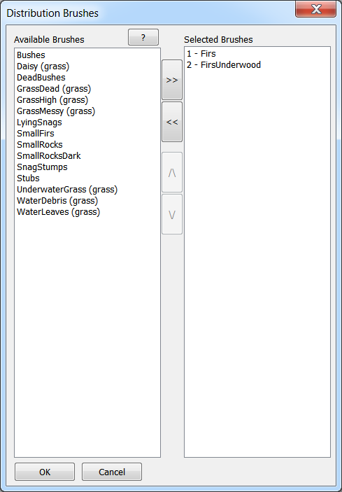Выберите кисти распределения (двойной клик по названию кисти в Available Brushes):