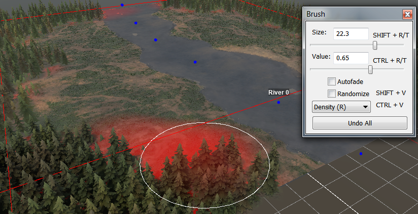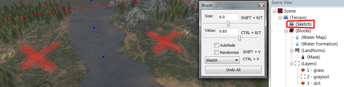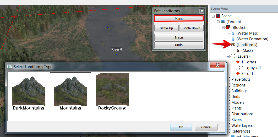 После размещения landforms с помощью ПКМ, нажмите ЛКМ по местности, чтобы применить их.