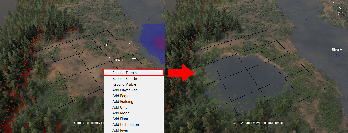 После размещения Reference нажмите “Rebuild Terrain”, чтобы применить изменения: