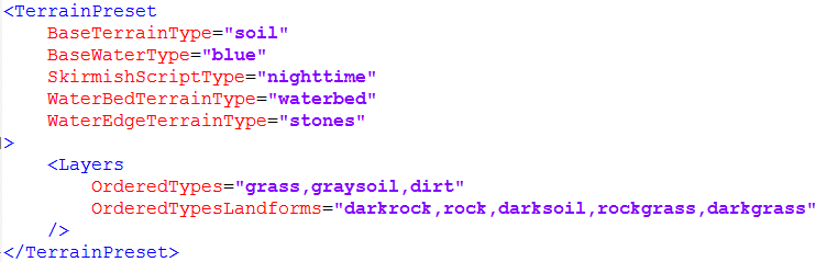 Preset — это XML-файл, описывающий “биом” уровня: типы текстурных слоёв и тип скрипта для схватки по умолчанию.