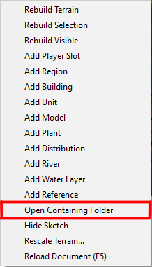 Совет: нажмите ПКМ и выберите “Open Containing Folder”, чтобы открыть папку с файлами уровня в “prebuild”: