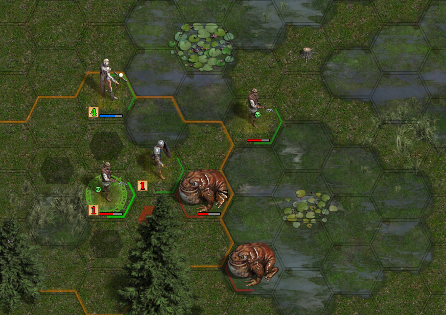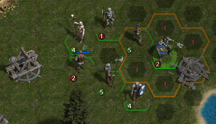 Пошаговые бои сложны. Прикрывайте магов и лучников воинами. Учитывайте направление взгляда юнитов, их боевой дух и накопившуюся усталость. Стройте баррикады, копайте рвы, стройте мосты. Освещайте поле боя огнями. Замораживайте реки, освещайте поле боя огнями, рубите деревья!