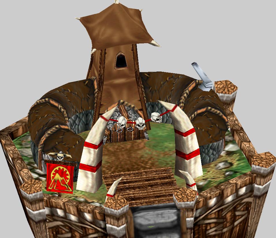 1. Зал Вождей. Главное здание Орды, в котором можно нанимать батраков и куда они складывают добытые ресурсы. По-моему тут моделлер постарался на славу, хотя местами есть пустоватость.