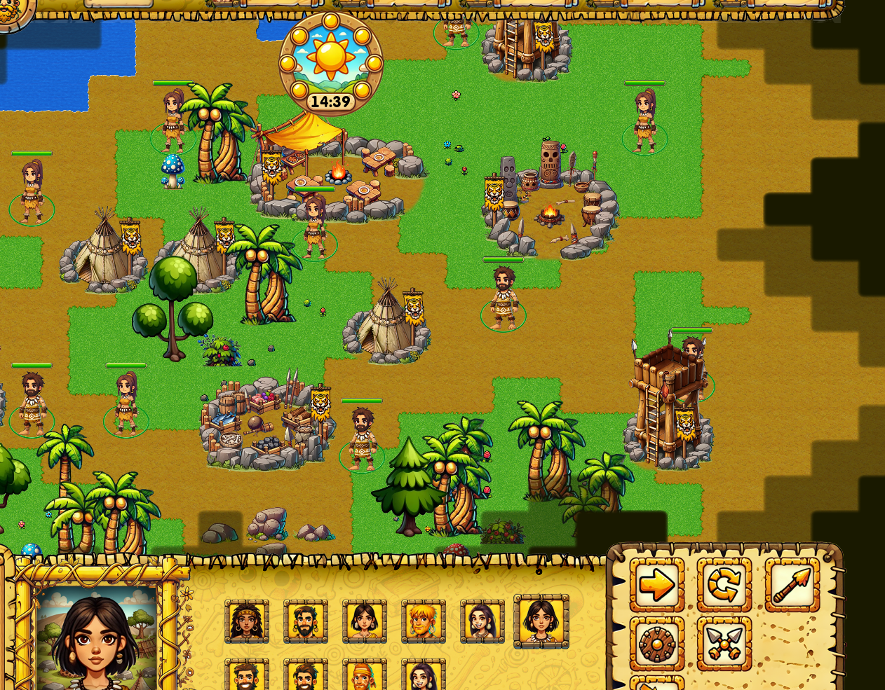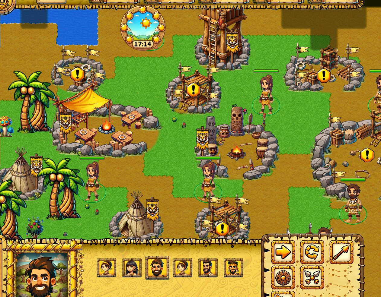- Созданы все здания для племени "Охотники", в том числе с кадрами строительства;