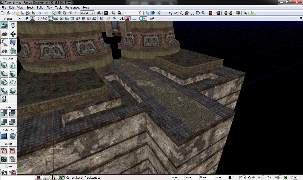 Пришло время брашей за бордюрами. Для них мы используем текстуру земли, которая находится в UN_Terrain и называется Dirt_04. Но для начала, можно подметить, что там, где мы экструдировали эти браши, есть три разные поверхности, квадратная текстура которых не выровненная (как следствие, любая текстура на браше будет не выровненной), и ее надо выровнять. Сделать это можно, если выбрать все три поверхности, и в их свойствах, на панели Alignment, выбрать в списке пункт Planar и применить его с помощью Apply. Квадратики тут же станут будто одной текстурой. Теперь примените материал, указанный выше, на все три части поверхности (а теперь представьте себе, что у вас поверхностей куда больше, и нужно на каждый перенести текстуру, и поймете все предостережения насчет количества поверхностей, которые я оставлял ранее) и поменяйте его масштаб на 2.00. Как и большинство объектов в редакторе, текстуры можно копировать с поверхности на поверхность с помощью стандартного Ctlr+C Ctrl+V, причем их свойства, такие как масштаб или выравнивание, сохраняются. Выделите затекстуренную поверхность, скопируйте, выделите незатекстуренную, вставьте (текстура будет применяться на все выделенные поверхности). Примените эту же текстуру на дно ваших бассейнов.