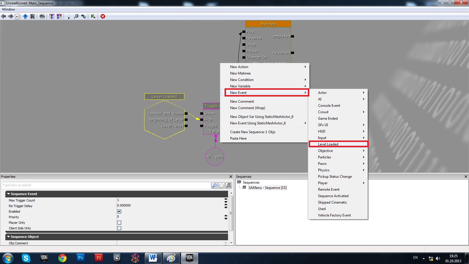 И заходим в кисмет. Создаём новый ивент Level Loaded.