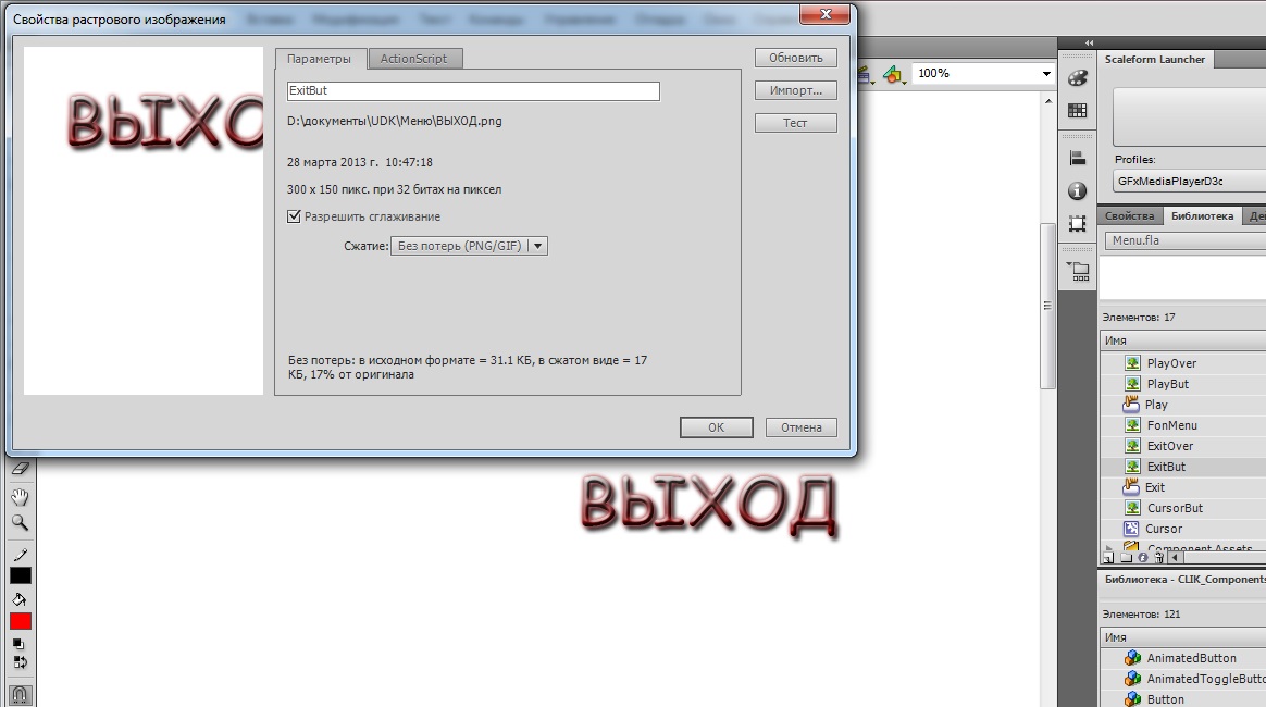 Теперь можно экспортировать ролик в формат SWF, в папку Disk:\UDK\UDKGame\Flash\папка с вашим названием.